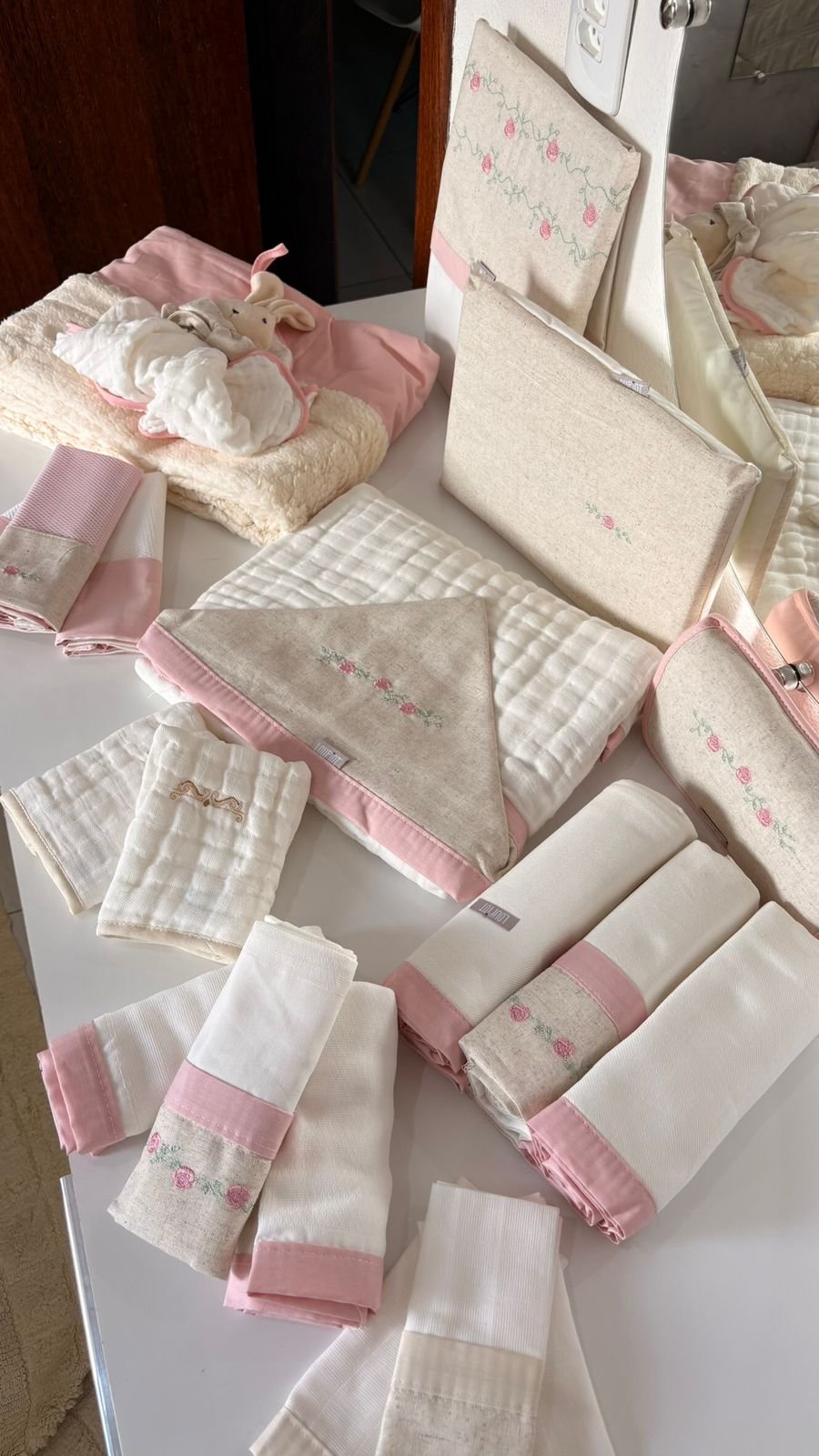 Além do charme, o combo garante muita praticidade: comprando um enxoval completo, você evita a busca individual por cada peça, economiza tempo e assegura que tudo combine entre si. É a escolha ideal para quem quer comodidade, harmonia visual e um enxoval prontinho para usar desde o primeiro dia.