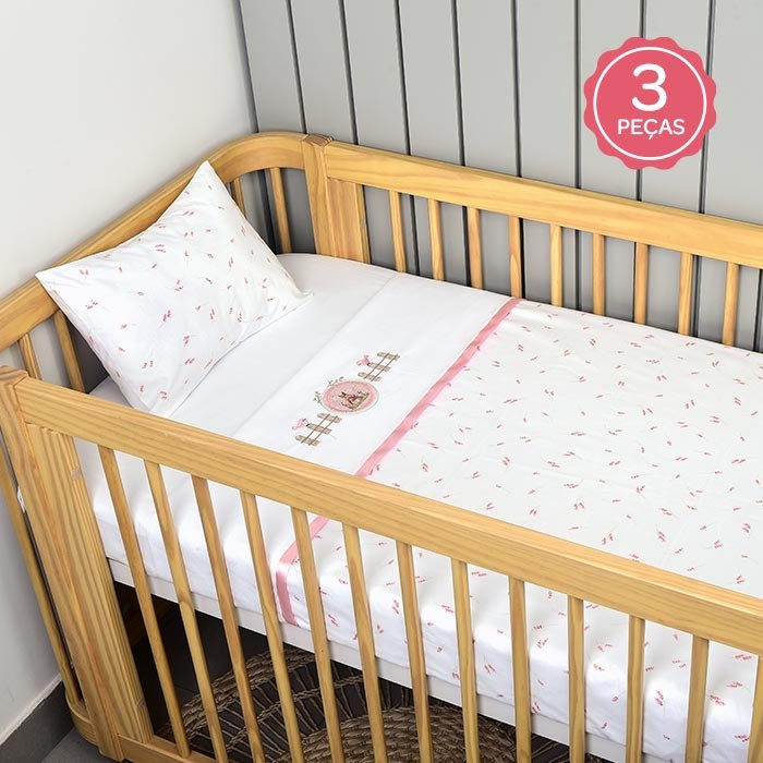 JOGO LENÇOL BERÇO AMERICANO CHÁ DA ESQUILINHA ROSA- 150 FIOS