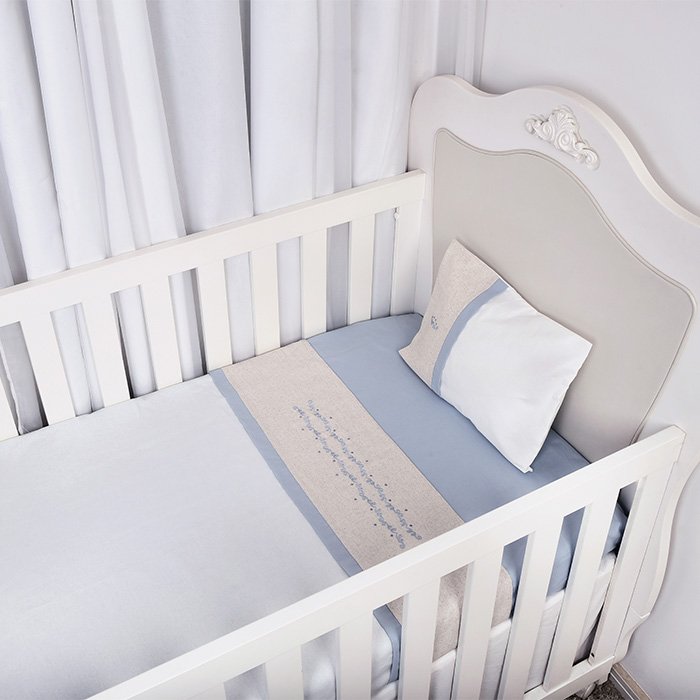 JOGO LENÇOL BERÇO AMERICANO BORDADO NATURE AZUL – 150 FIOS